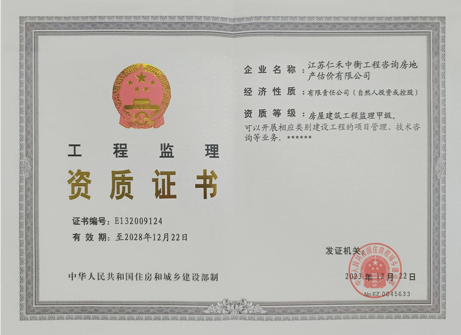 - 房屋建筑監(jiān)理甲級(jí)證書